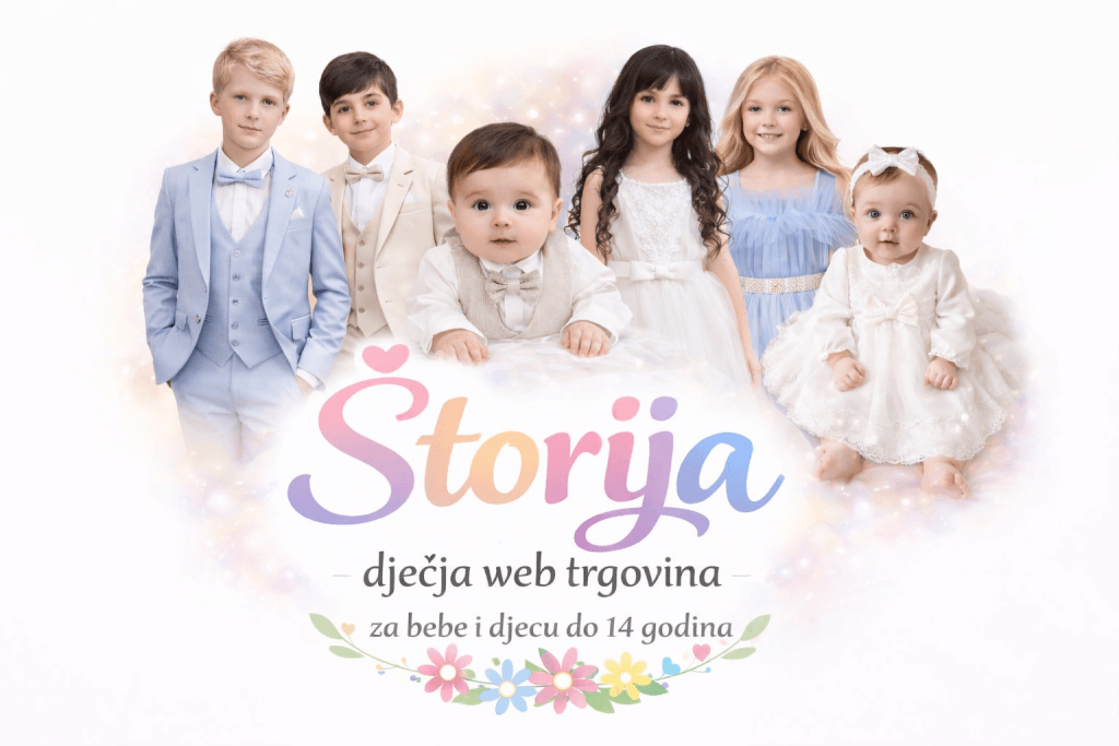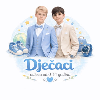 Veliki izbor odjeće za bebe i djecu do 14 god. za sve vaše prilike. Svečane i svakodnevne haljine, svečani i razni drugi kompleti, krsni program, košulje, hlače, majice, trenerke, jakne, džemperi, kombinezoni za bebe, kompleti za izlazak iz rodilišta, dekice, posteljina za krevetić, vreće za spavanje, trakice za kosu, čarapice, hulahopke, cipelice za nehodače i još puno toga…