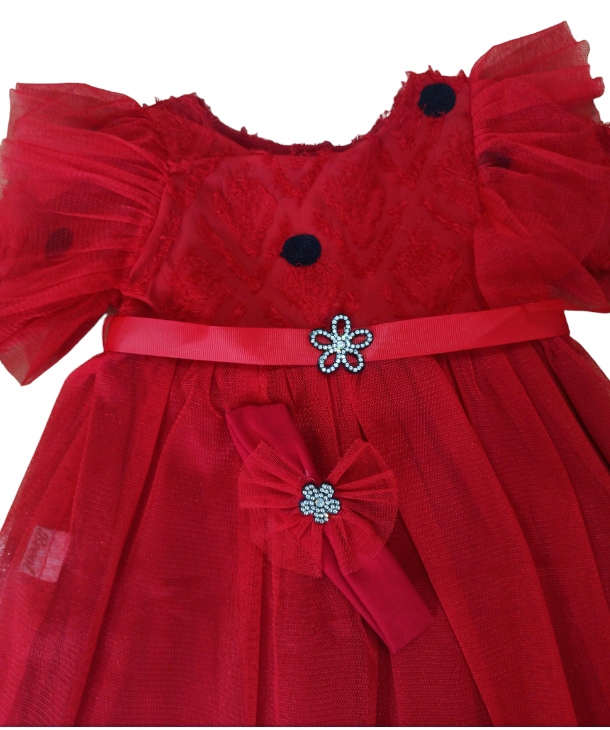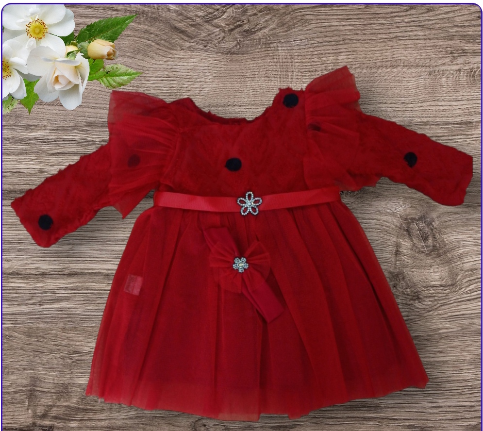 Haljina prljavo roza ili crvena boja + trakica za kosu sa dodacima tila.