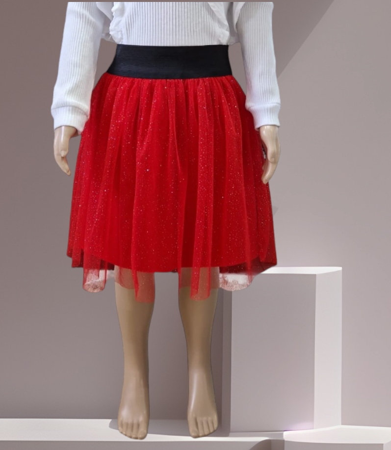 Suknja sa tilom u crvenoj boji sa decentnim srebrnim šljokicma.