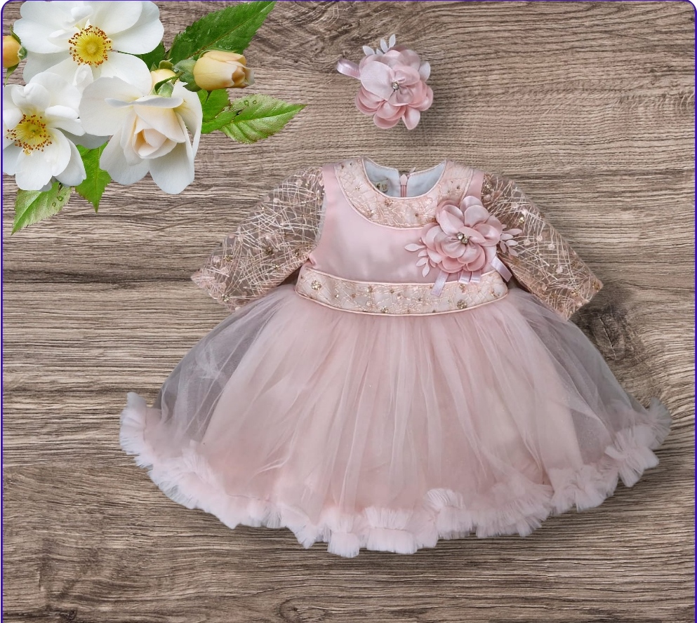 Svečana haljina u boji breskve  sa ukosnicom.