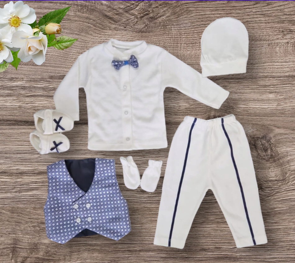 Svečani komplet koji se sastoji od benkice, hlača, prsluka, rukavica, kape i cipelica.