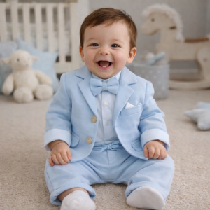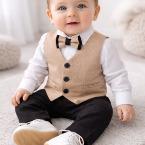 Svečani komplet u sivoj, bijeloj ili tamno plavoj kombinaciji…hlače, prsluk, leptir mašna sa bijelom košuljom.
