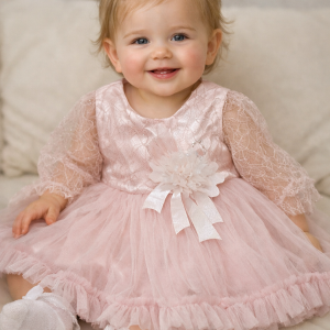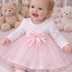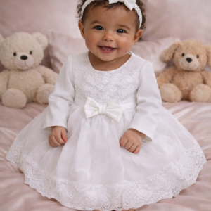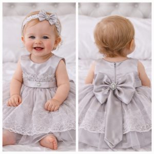 Svečani komplet koji se sastoji od haljinice, trakice za kosu, hulahopki, bodija dugih rukava i cipelica.